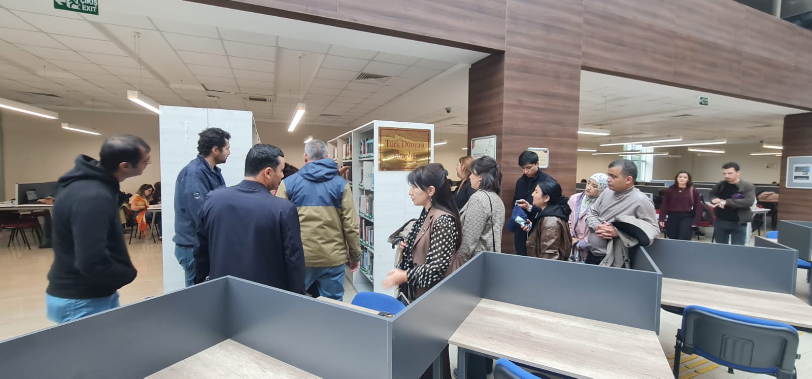 Özbekistan Bilimler Akademisi Genel ve İnorganik Kimya Enstitüsü’nden 11 kişilik bilim heyeti Kütüphanemizi ziyaret etti. Özbekistan heyetinde; Kolloid Kimya ve Endüstriyel Ekoloji Laboratuvarı Başkanı Prof. Dr. Eşmetov İzzat Dusimbatoviç, Termiz Devlet Pedagoji Enstitüsü Rektör Yardımcısı Prof. Dr. Kuldasheva Shakhnoza Abdulazizovna ve Berdak'ın adını taşıyan Karakalpak Devlet Üniversitesi'nden iki rektör yardımcısı dahil olmak üzere toplamda 11 öğretim üyesi yer aldı. Heyete kütüphane hizmetleri ile ilgili temel bilgiler verildi.