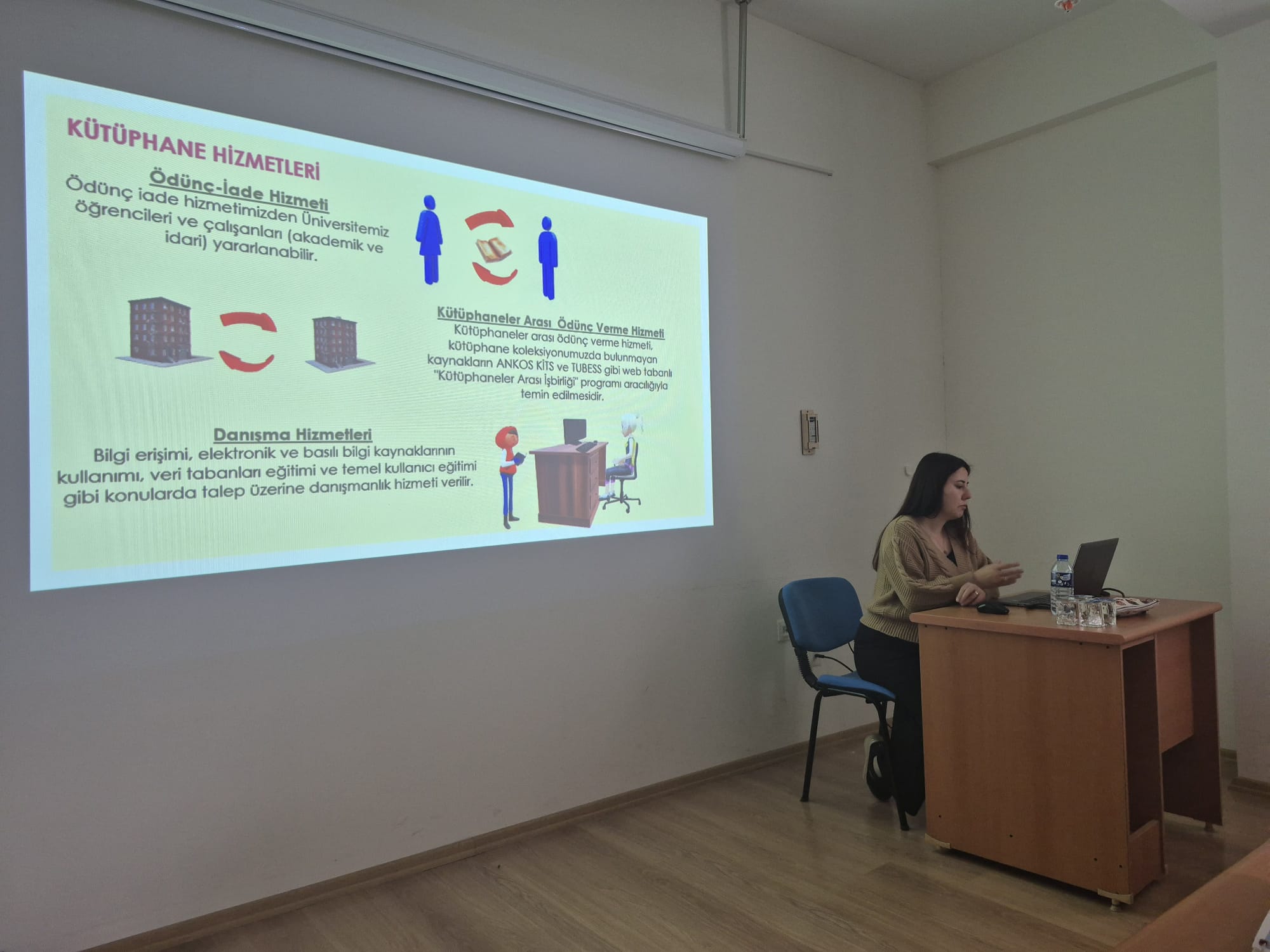 Üniversite Kültürü ve Oryantasyon dersi kampsamında Gazetecilik bölümü 1. sınıf öğrencilerine 15.10.2025 tarihinde "Kütüphane Oryantasyon Eğitimi" verildi.