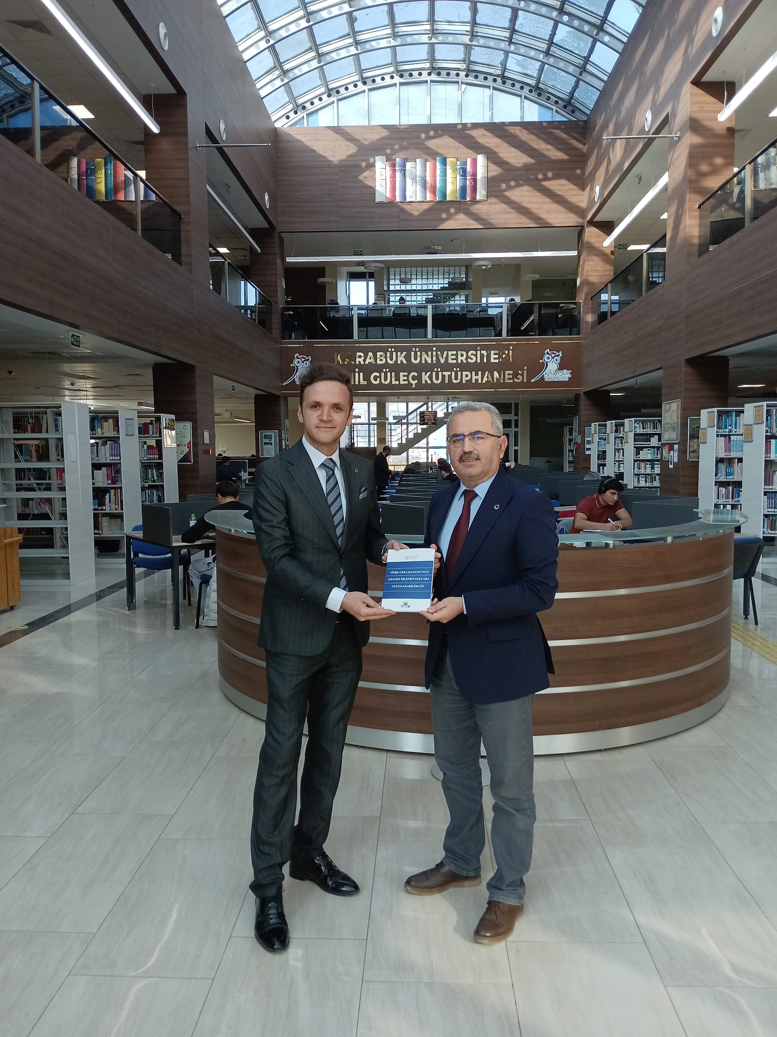 Karabük Cumhuriyet Başsavcılığı Ceza evi ve Basın yetkili savcısı Sayın Oğuz YILMAZ, KBÜ Hukuk müşaviri sayın Av. Hüseyin KURT ile birlikte KBÜ Kütüphane ve Dokümantasyon Daire Başkanı Dr. Özcan BÜYÜKGENÇ’i ziyaret ederek “Türk Ceza Kanunu’nun Uzayda İşlenen Suçlara Uygulanabilirliği” adlı kitabını Karabük Üniversitesi Kütüphanesine hediye etti.