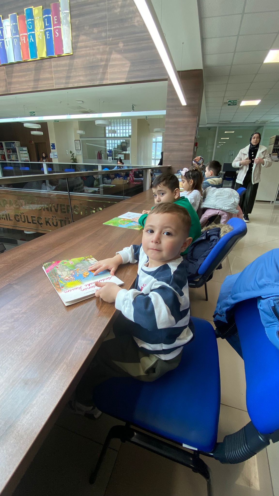 Karabük My Kolej'i öğrencileri, öğretmenleri eşliğinde Üniversitemiz Kamil Güleç Kütüphanesini ziyaret etti. Geleceğin bilinçli bireyleri olan minik öğrencilerimiz, uzman kütüphaneciler rehberliğinde kütüphane binasını gezerek kütüphane işleyişi hakkında bilgi edindiler. Kütüphanenin estetik mimarisi ve zengin koleksiyonundan büyük ölçüde etkilenen öğrenciler, kitapların dünyasını yakından tanıma fırsatı buldular. Kütüphanemizde bulunan çocuk kitaplığı bölümünden kitap alarak okuma etkinliği de gerçekleştiren öğrenciler, okuma kültürü ve kütüphanelerin önemi konusunda farkındalık kazandılar. Keyifli ve öğretici anların yaşandığı ziyaret, toplu fotoğraf çekimi ile sona erdi. Nazik ziyaretleri için öğrencilerimize ve kıymetli öğretmenlerine teşekkür ederiz.